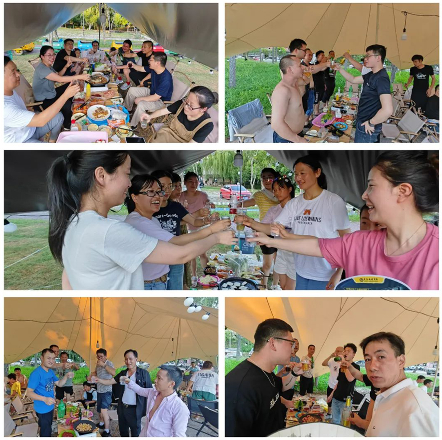 在结束了下午自由活动后,金象人和家人们兴高采烈地来到了烧烤晚会现场,一边享受烧烤和啤酒的美妙滋味,分享工作中的点滴和生活中的趣事,一边欣赏同事们带来的丰富多彩的歌舞表演和互动游戏,现场其乐融融,充满了欢笑声和掌声。