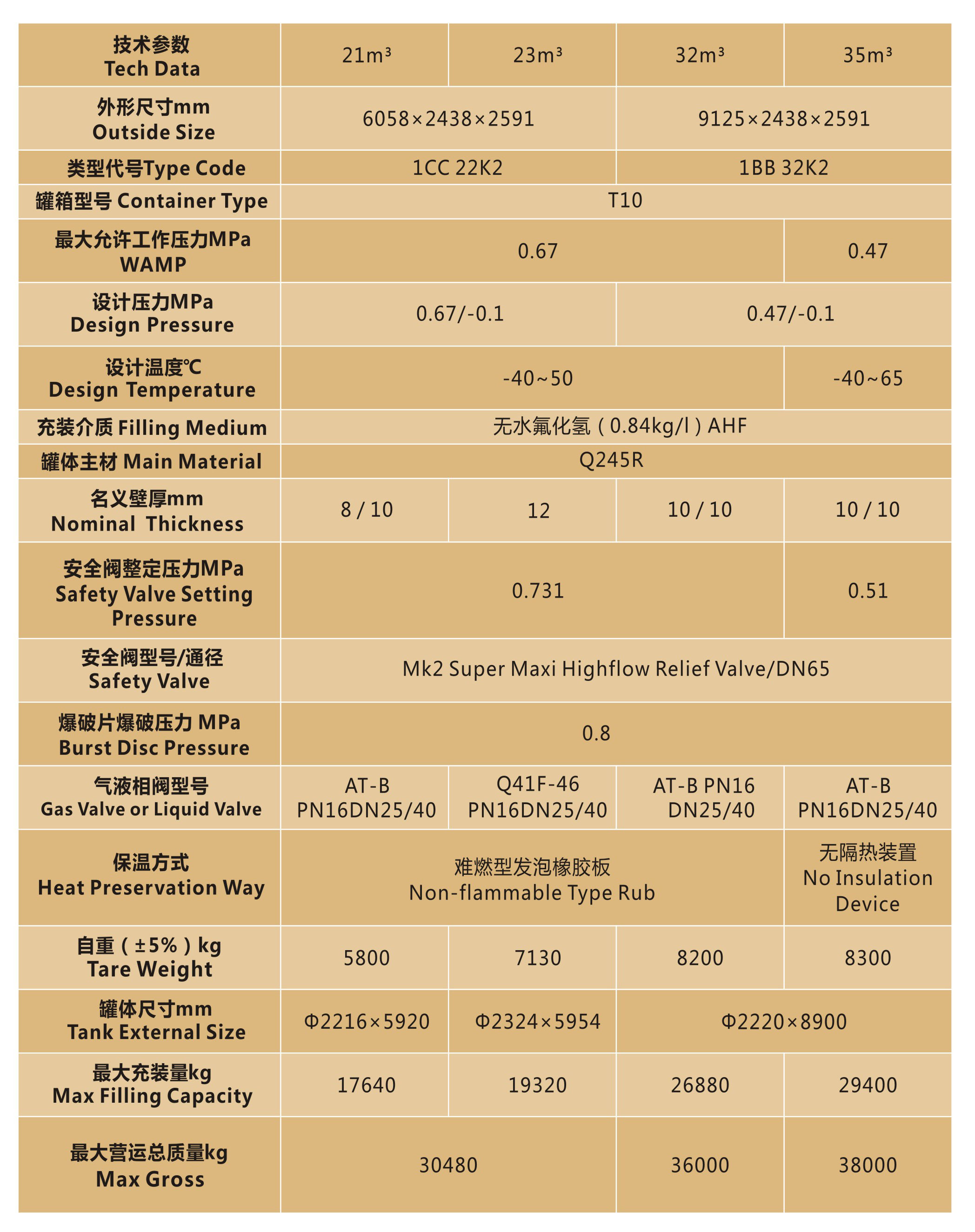 无水氟化氢罐式集装箱