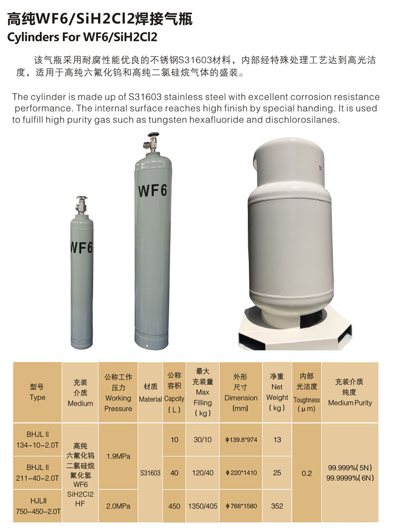 高纯WF6 SiH2Cl2焊接气瓶
